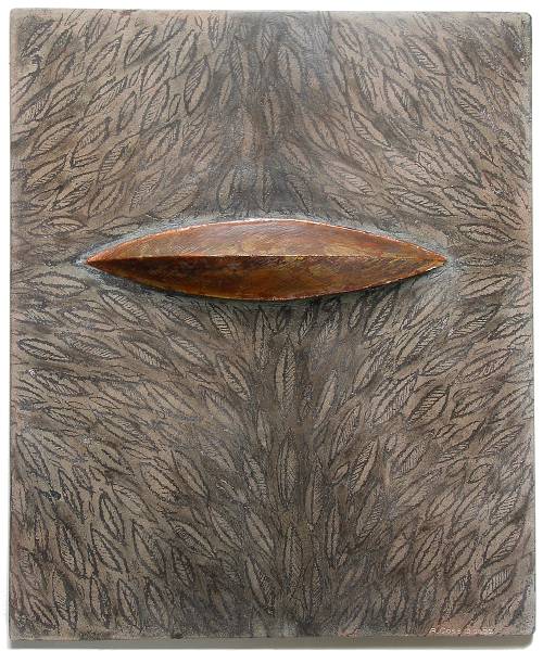 Wall plaque. Grey concrete, copper leaf, pigmented concrete. 15.5" X 18.5" (39 X 47 cm)