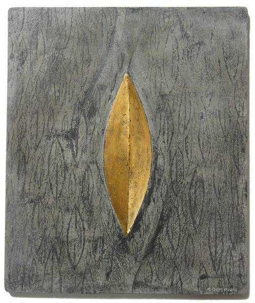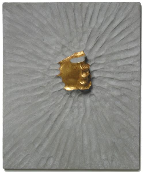 Wall plaque. Grey concrete, 24K gold leaf, pigmented concrete. 15.5" X 18.5" (39 X 47 cm)
