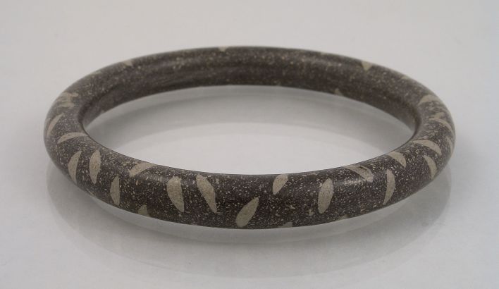 Grooves were cut in and filled with a contrasting colour. 2006.