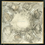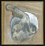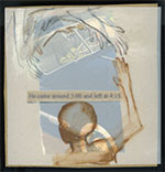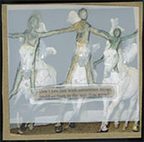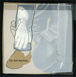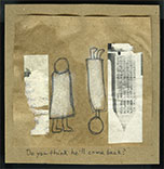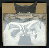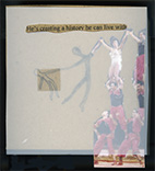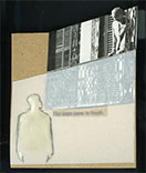 I chose materials and imagery I thought would enhance qualities of familiarity, mystery, and depth. I used mylar to create a top layer, partially exposing and covering up the images on the kraft paper. Various layers of memory, and possible hidden meanings can be read. I used old clippings from inherited picture files of the 1950s that belonged to my father, an illustrator. I also found some Life magazines from 1953, the year I was born. The images from the fifties seemed to resonate with the words I had been collecting. This is the time I grew up in; a time, pre-feminism, when the media portrayed happy, clean-cut families, compliant housewives, and romantic couples. This was where my early dreams were forged. I now have both a nostalgic and sarcastic response to these images. These old clippings suited my experience more than found imagery from the computer ever could. I chose them spontaneously, in the same way that I draw, making unconscious and not always logical connections between the images and words.